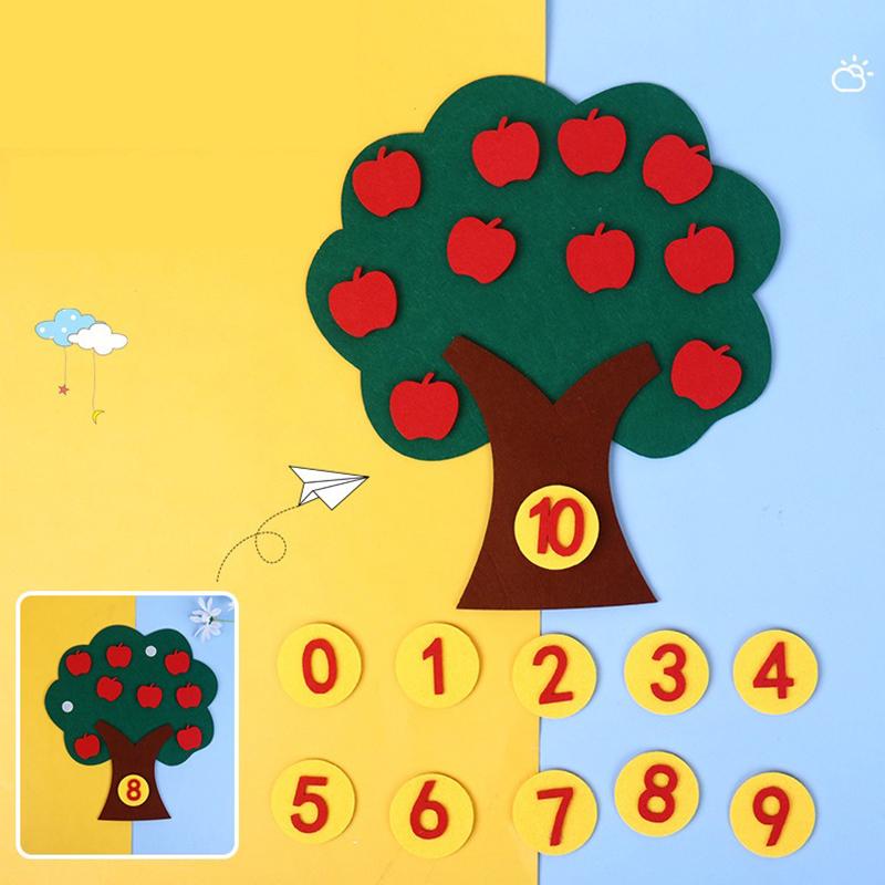 2 Mixed Set Fruit Tree Felt Jigsaw Puzzle Non-woven Apple Pear Orange Peach Trees DIY Handcrafts Early Education Props Gifts ZYF