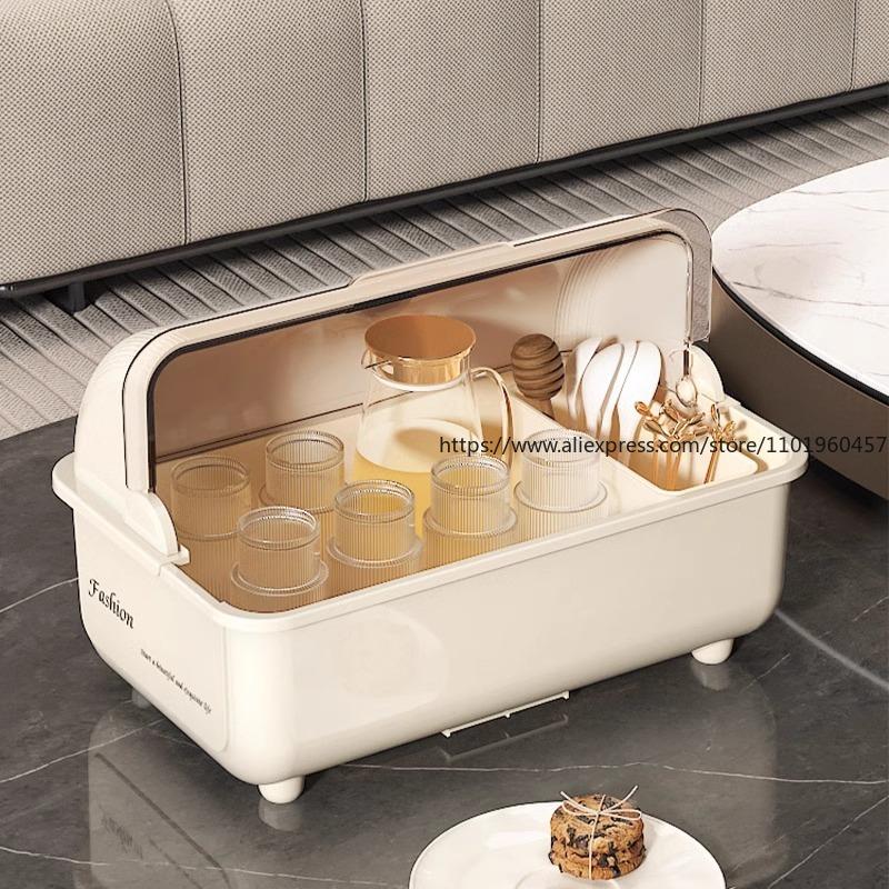 Kitchen Drainable Dish Storage Box Multi-Functional Tableware Organizer with Lid Dust-Proof Bowl Rack for Plates Bowls Utensils