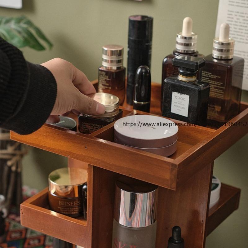 360-Degree Rotating Wooden Cosmetics Desktop Dressing Table Skin Care Products Lipstick Organization And Storage Rack Layered