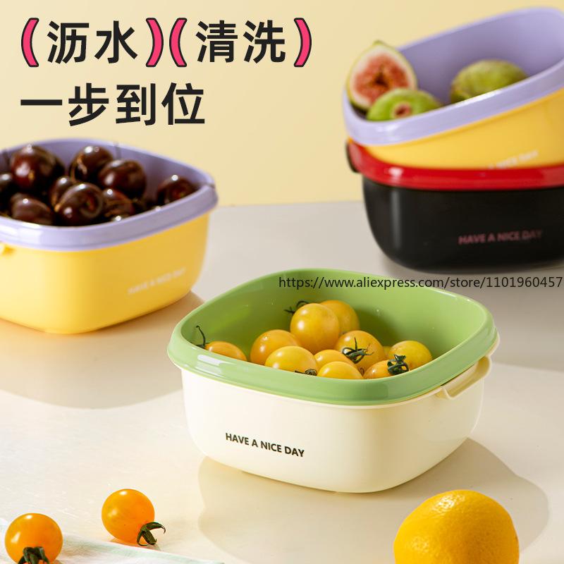 Double-Layer Household Colander Multi-Use Drainage Basket for Kitchen Sink Washing Veggies Rice Living Room Fruit Bowl