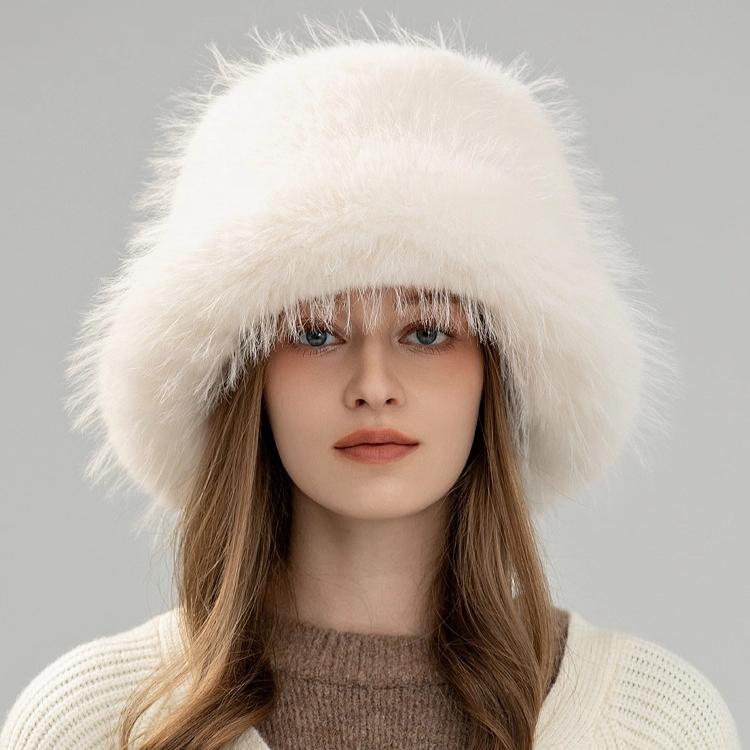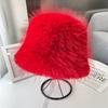 New Imitation Fox Hair Bucket Hat Women's Autumn and Winter Fashion Versatile Thickened Warm Plush Top Hat Japanese Show Small Face