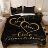 3pcs Black Golden Bedding Set Love Forever Printed Cozy Duvet Cover King Queen Twin Size Birthday Gift for Adult Bedroom Decor
