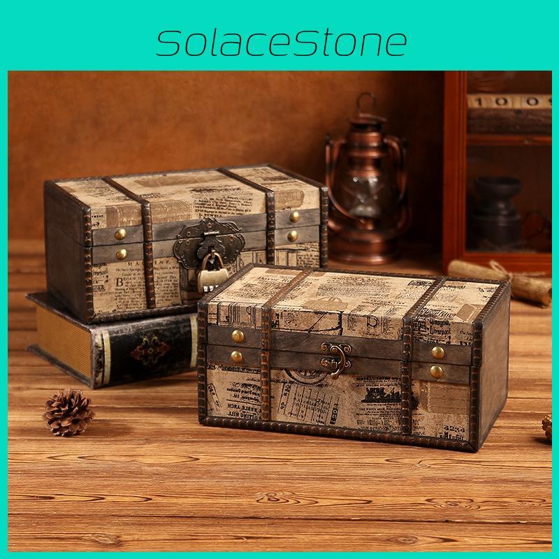 Wooden Jewelry Retro Storage Box With Lid For Cosmetics Accessories Organization