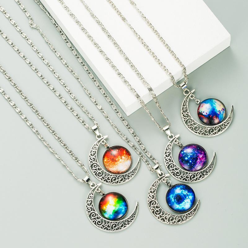 Moon Galaxy Starry Sky Gemstone Necklace, Fashionable Hip Hop Sweater Chain Jewelry For Men And Women