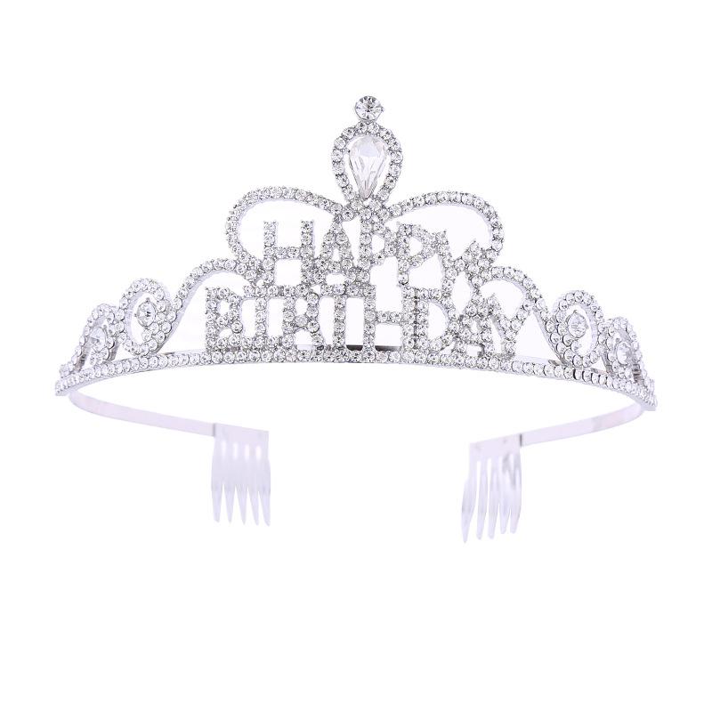 Bridal Tiara Alloy Rhinestone Non Slip Comb Headband Princess Birthday Hairpin Shoulder Strap Set