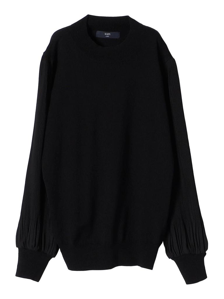 This elegant combination knit features pleated sleeves as an accent.