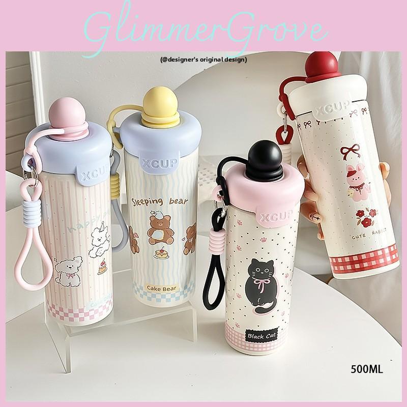 This 500ml cartoon-style stainless steel vacuum mug features a durable 316 stainless steel inner liner and 201 stainless steel exterior, providing heat retention for 6-12 hours. Its large capacity, lightweight design, and built-in straw make it ideal for school, outdoor activities, or daily commuting. Easy to clean with a damp cloth.