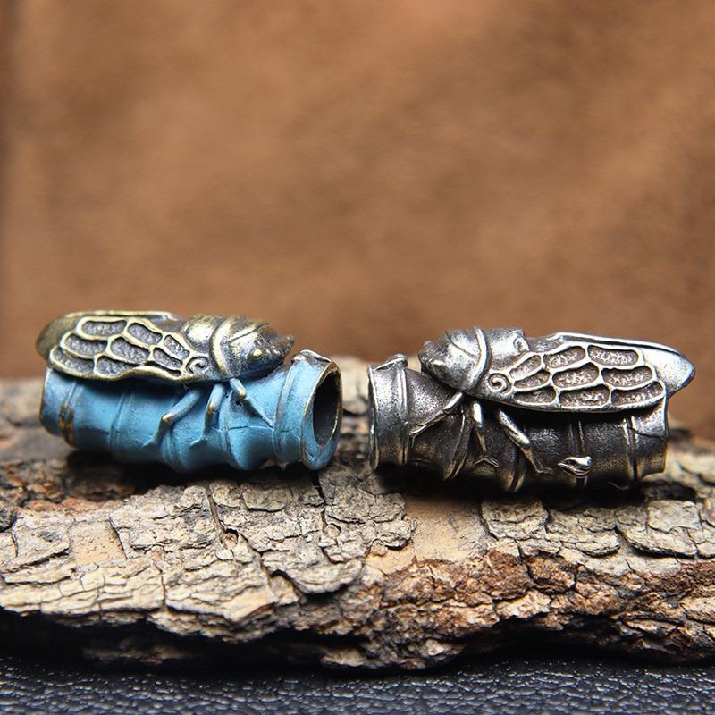 1Pc Bamboo Cicada Brass Knife Beads DIY Paracord Beads Lanyard Key Chain Pendant Accessories Outdoor Tool Umbrella Rope Hangings