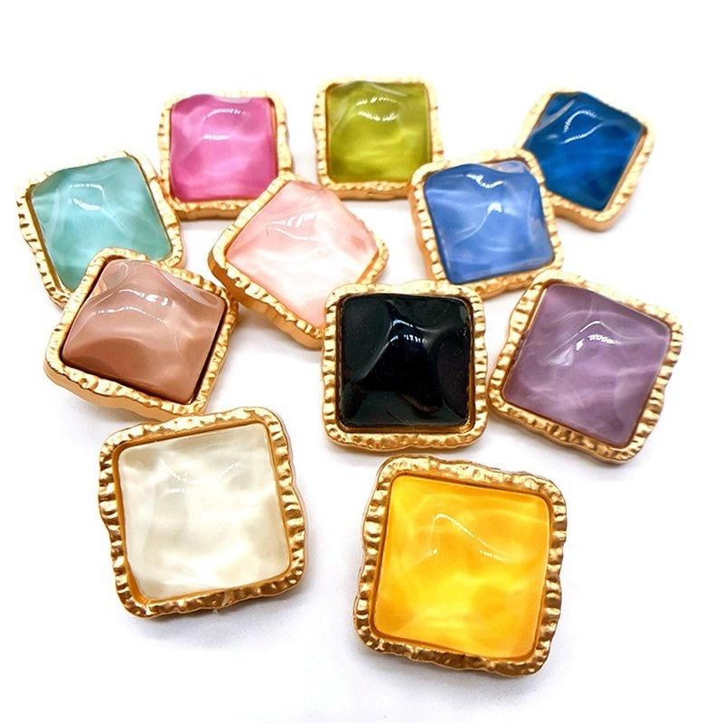 6Pcs 21mm Square Metal Women Coat Sewing Buttons for Clothes Vintage Jacket Sweaters Dress Decorations Accessories