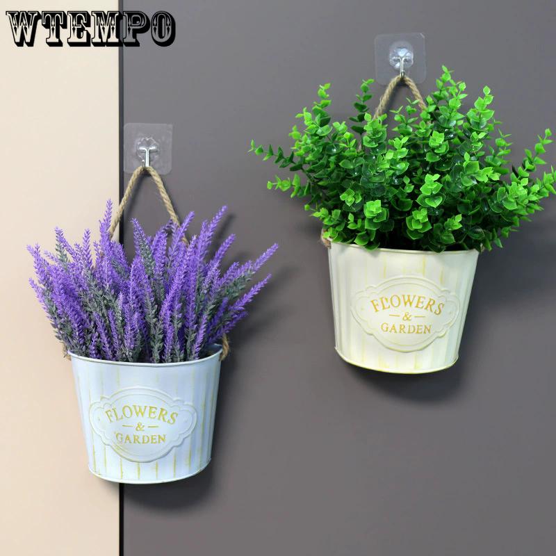WTEMPO Retro Rural Ironwork Flower POTS Flower Vases Garden Hanging Buckets Exterior Wall Decorations Wall-hung Flower Baskets Balcony Hanging Buckets
