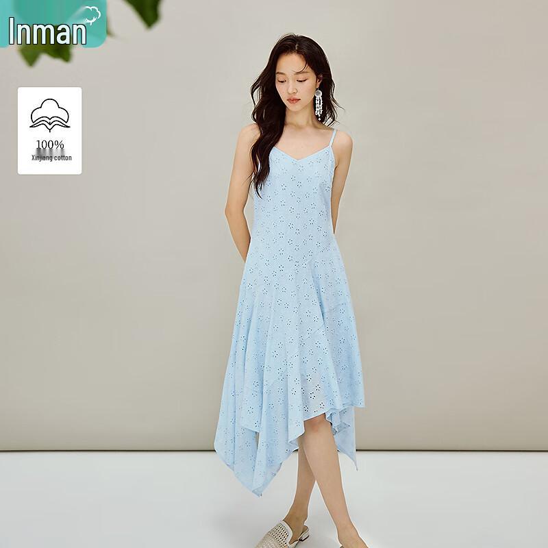 INMAN French Hollow Out Embroidered Irregular A-Line Strappy Dress