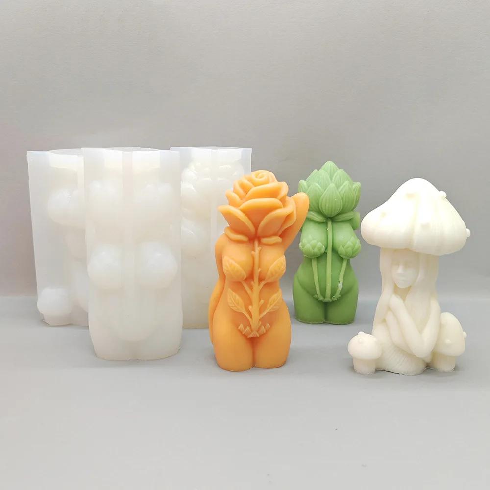 3D Rose Woman Female Body Candle Silicone Mold Lotus Goddess Resin Silicone Mold Mushroom Head Human Body Gypsum Mold