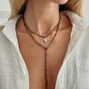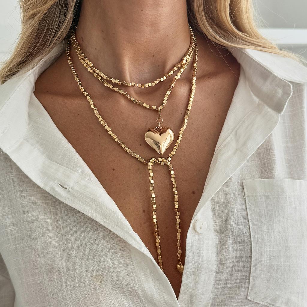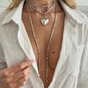 Fashion Gold Color Love Heart Pendant Necklace Women Vintage Beaded Chain Long Necklace Sweater Chain Jewelry Accessories