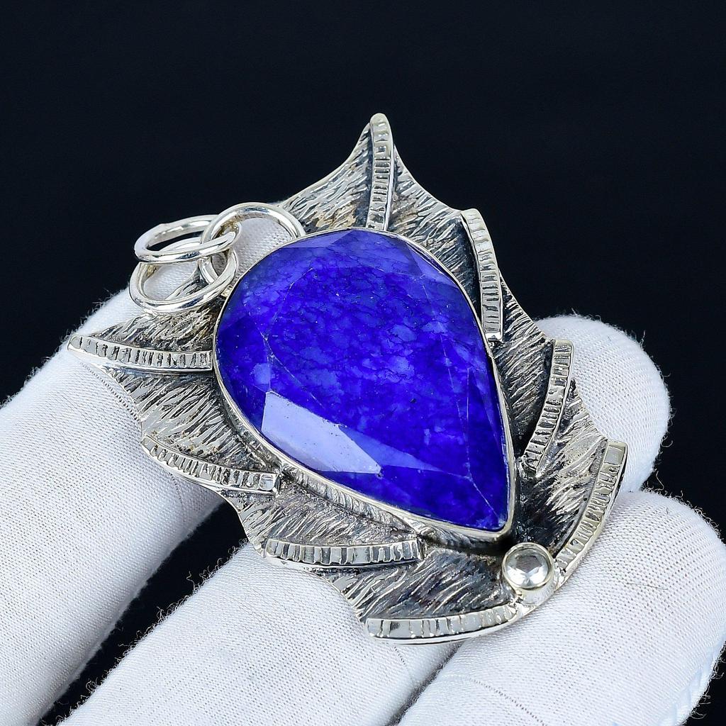 Blue Sapphire Pendant, 925 Sterling Silver Handmade Jewelry, Sapphire Silver Pendant, Party Wear Jewelry For Women's, Pendant Wadding Gift