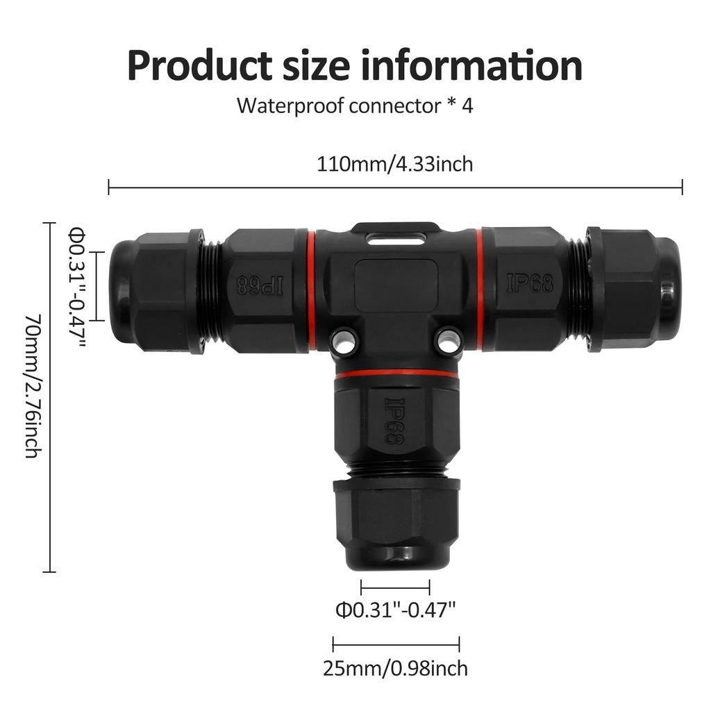 4Pcs 3-Pin Waterproof Cable Connectors for 8-12 Mm Diameter Earth Cable Connector IP68 Connection Box Junction Box for Garden