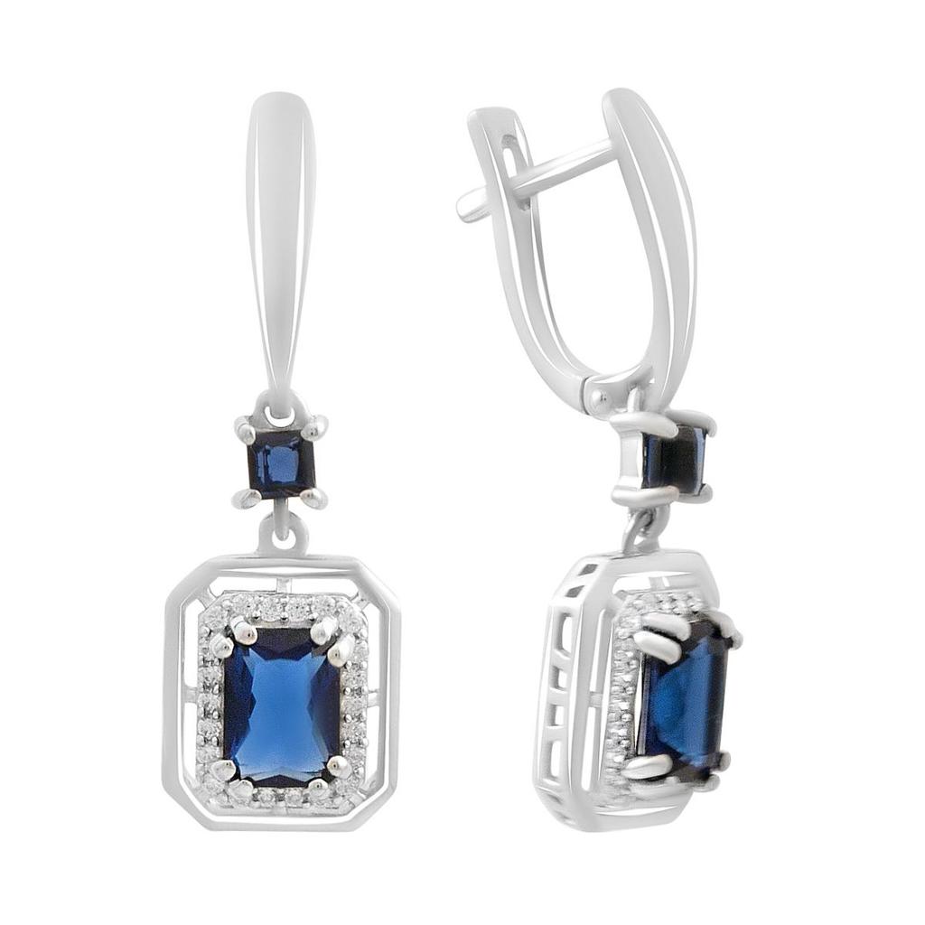 silver earrings with sapphire nano 2.947ct, cubic zirconia