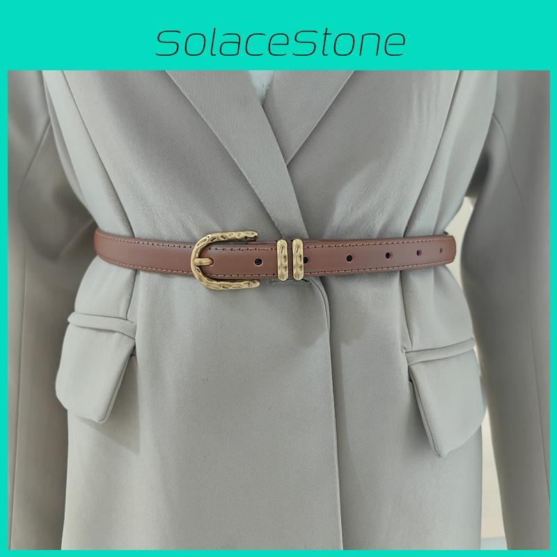 Solid Color Leather Womens Double Layer Belt For Casual And Office Wear With Classic Buckle