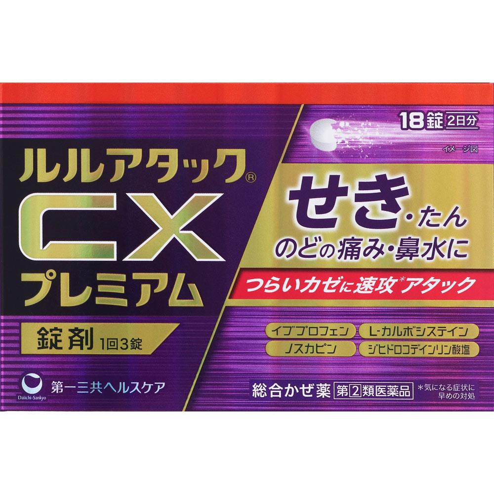 Daiichi Sankyo Healthcare Lulu Attack CX Premium 18 tablets Effective Cough Medicine Indications: Relief of cold symptoms (cough, phlegm, sore throat, runny nose, nasal congestion, fever, chills, sneezing, headache, joint pain, muscle pain)
