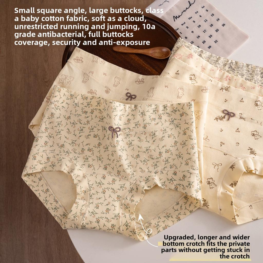 Girls Spring and Autumn Pure Cotton Floral Antibacterial Extended Package Hip Angle Underwear