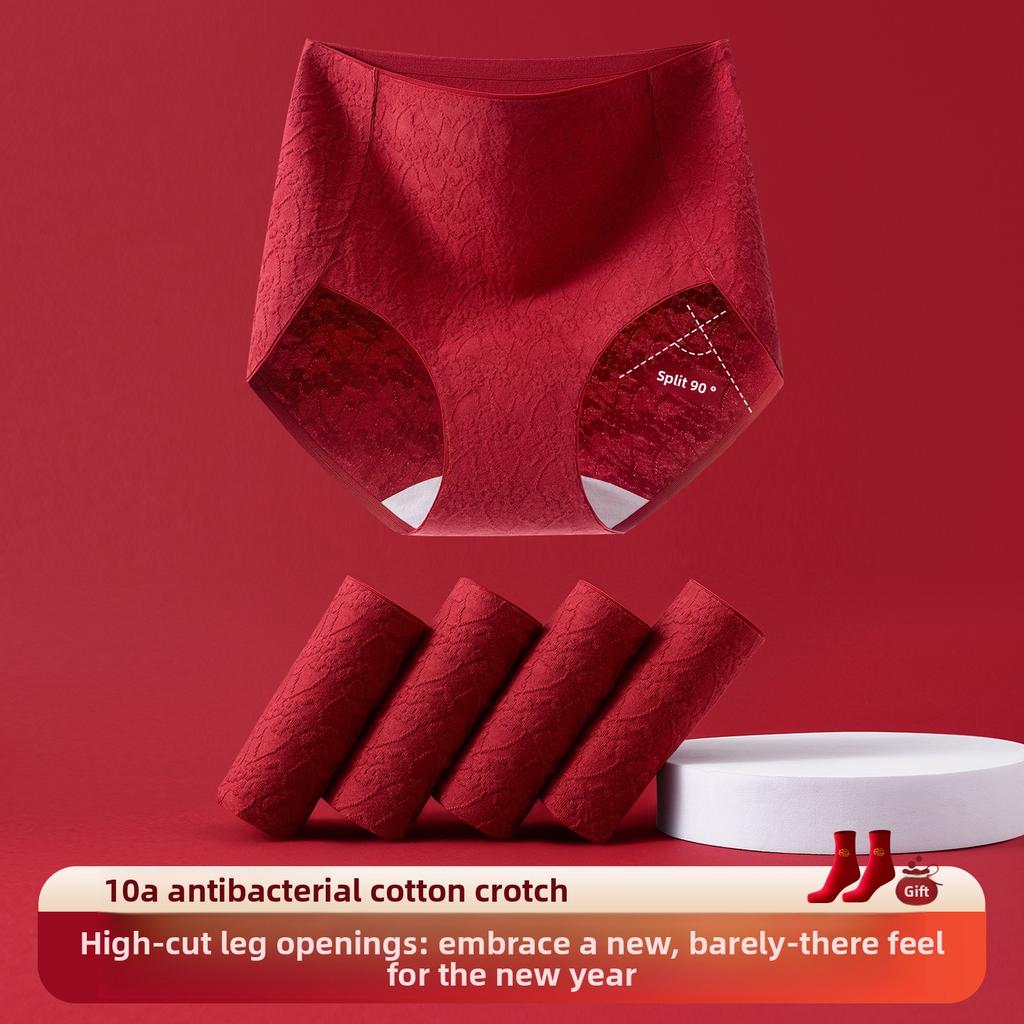 Women's Spring and Autumn New Year Wedding Pure Cotton Red 10A Antibacterial Crotch Non-mark High Waist Underwear