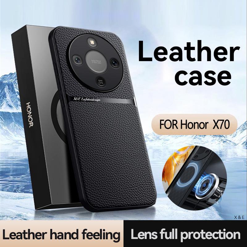 High Grade Luxury Magnetic Car Holder Leather Case For Honor X70 Silicone Protective Scratch Resistant Back Cover