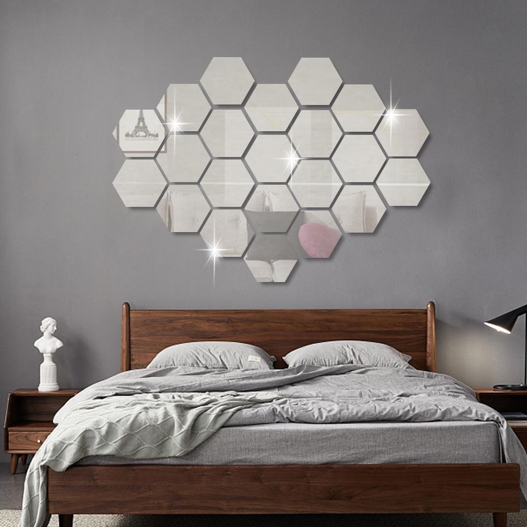 3D Hexagon Mirror Wall Stickers DIY Wall Mirrors Sticker Removable Self Adhesive Aesthetic Mosaic Tiles Decals Home Decoration