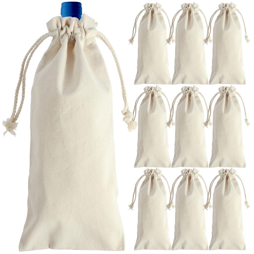 10Pcs Sublimation Wine Bottle Bags Reusable Wine Bottle Gift Bags Drawstring Bulk Blank Canvas Wine Bags For DIY Heat Transfer