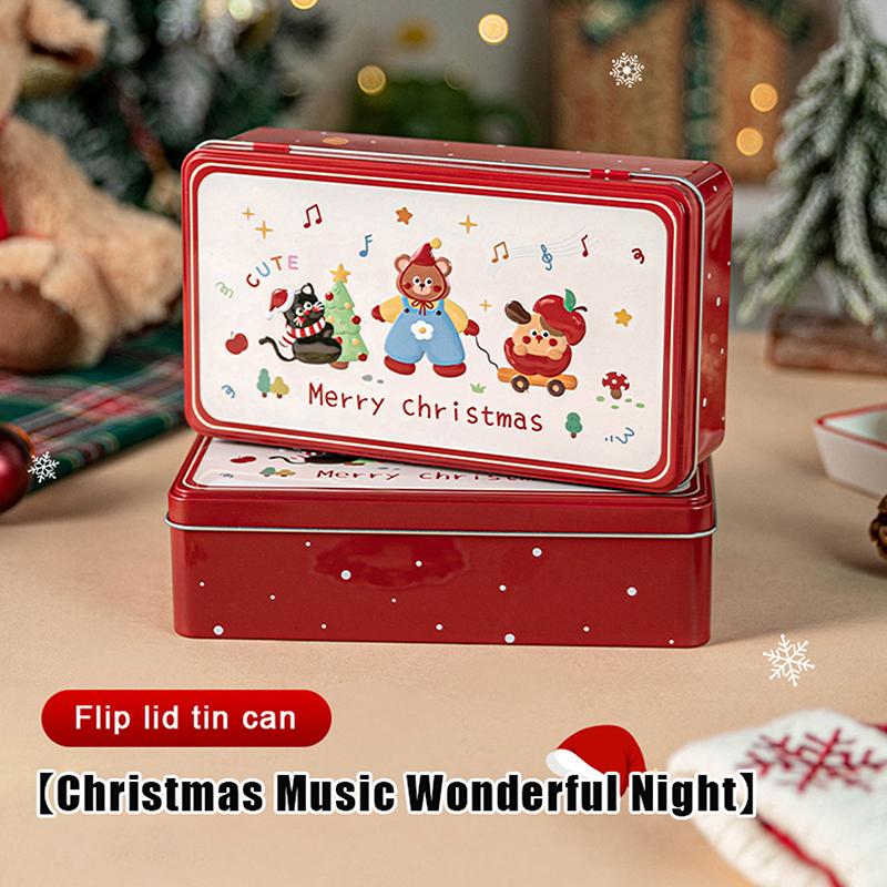 Cute Cartoon Christmas Candy Storage Box Tinplate Square Gift Box Xmas Candy Cookie Box Home Storage Large Capacity Metal Can