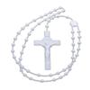 Fashion Rosary Beads Cross Pendant Necklace Women Link Chain Plastic Material Necklace Girl Religious Jewelry Party Gift