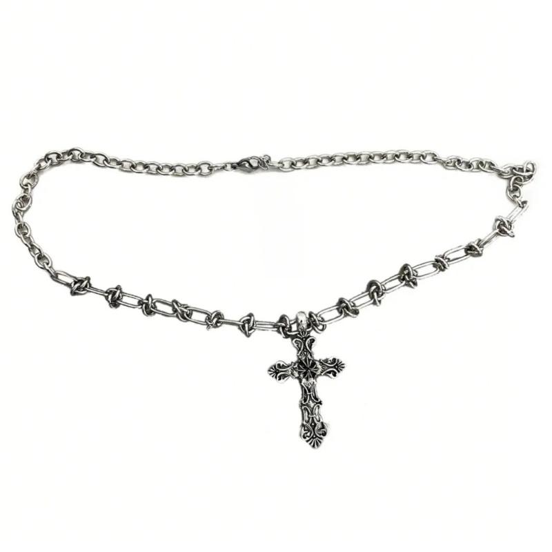 Gothic Dark Style Cross Pendant Necklace Rock Punk Goth Fashion Necklaces For Women Men Jewellery Design Mystical Gifts