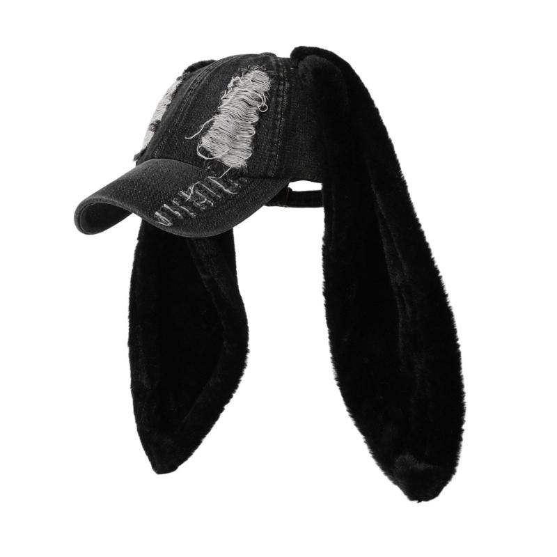 Long Rabbit Ears Adjustable Snapbacks Cap for Women Teens Winter Autumn Distressed Dad Hat Daily Fashion Accessories