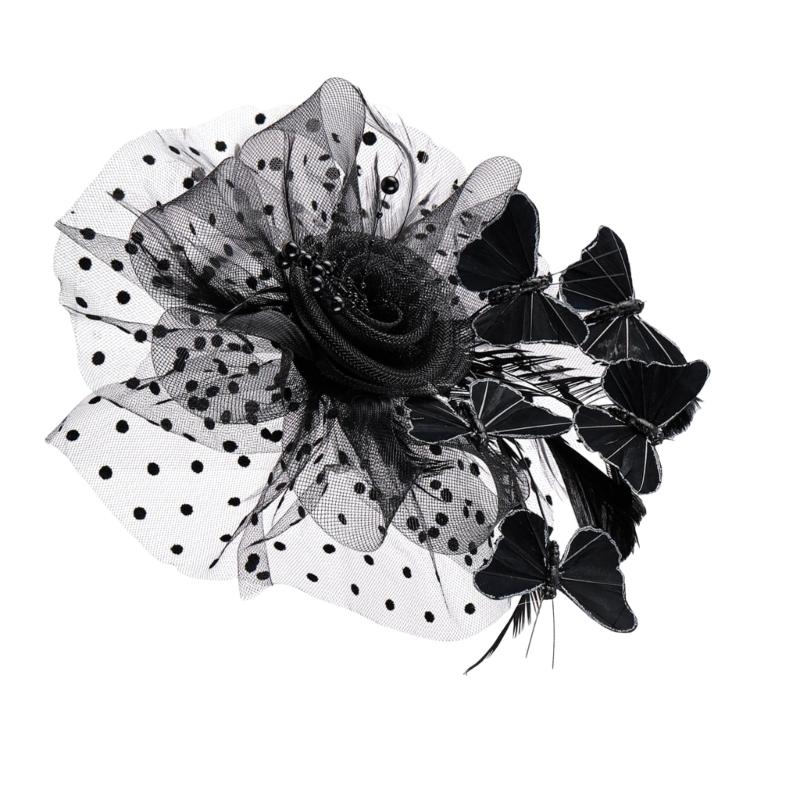 Bridal Fascinator with Faux Pearls Butterfly Headbands Hair Accessory For Weddings Adjustable Hair Clip Hair Decoration