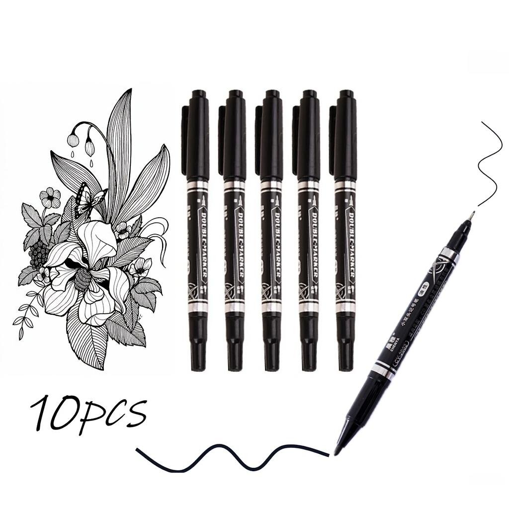 10pcs Dual-Tip Permanent Markers – Black Ink, Fine & Thick Tips – Ideal for Drawing, Calligraphy, Sketchbooks, Fabric, Wood