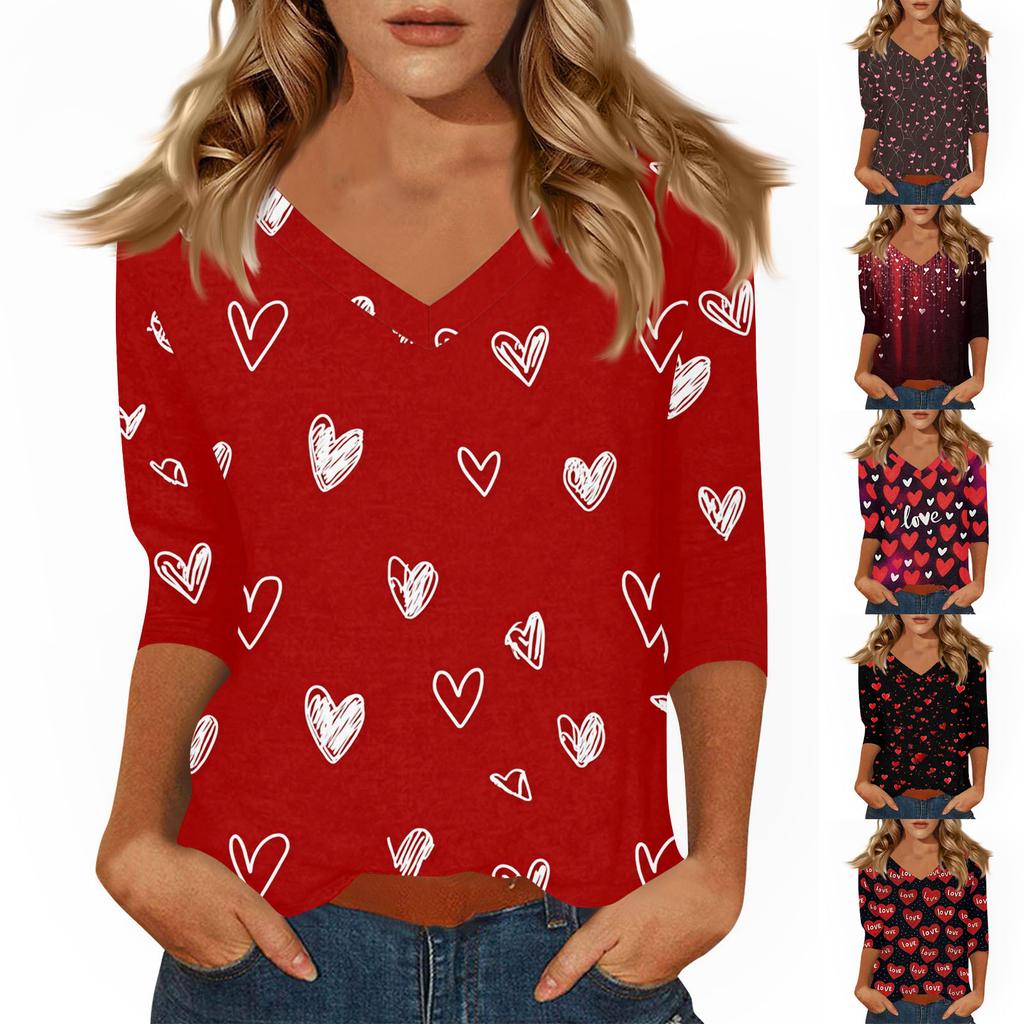 Women's T Shirt Print 3/4 Sleeve Daily Weekend Fashion Basic V- Neck Regular Top