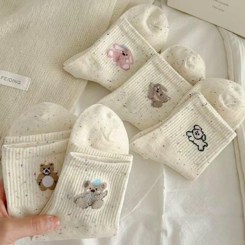 Socks for Girls, Spring and Autumn Animals, Cartoon Women, Mid-calf Socks, Sports Socks, White Socks, Cute Ladies