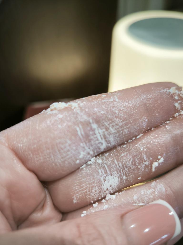 Super cream, I don't remember how many times I've ordered it. I periodically change and then come back to it again. Don't be afraid of these white specks, they rub easily into the skin. I recommend it.