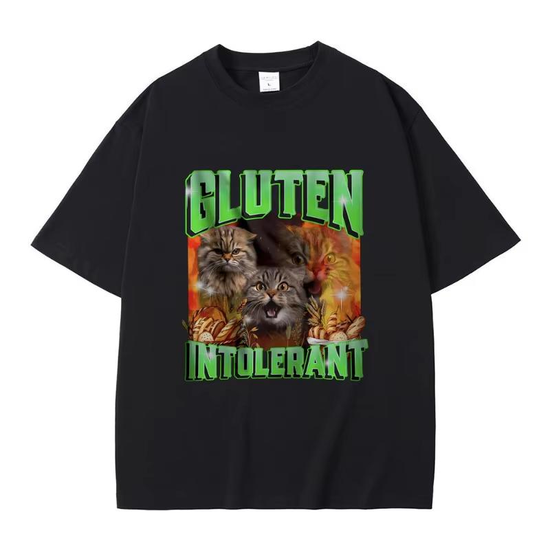 Gluten In Tolerant Cat Funny Meme Print T-shirt Male Fashion Oversized Streetwear Men Women Casual Cozy Pure Cotton Short Sleeve