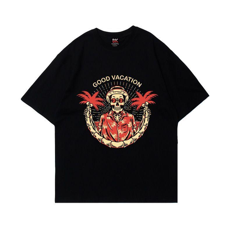 2025 Autumn and Winter Hip Hop Skull Tide Brand Printed T-shirt Men and Women Couples Pure Cotton Casual Loose Versatile T-shirt