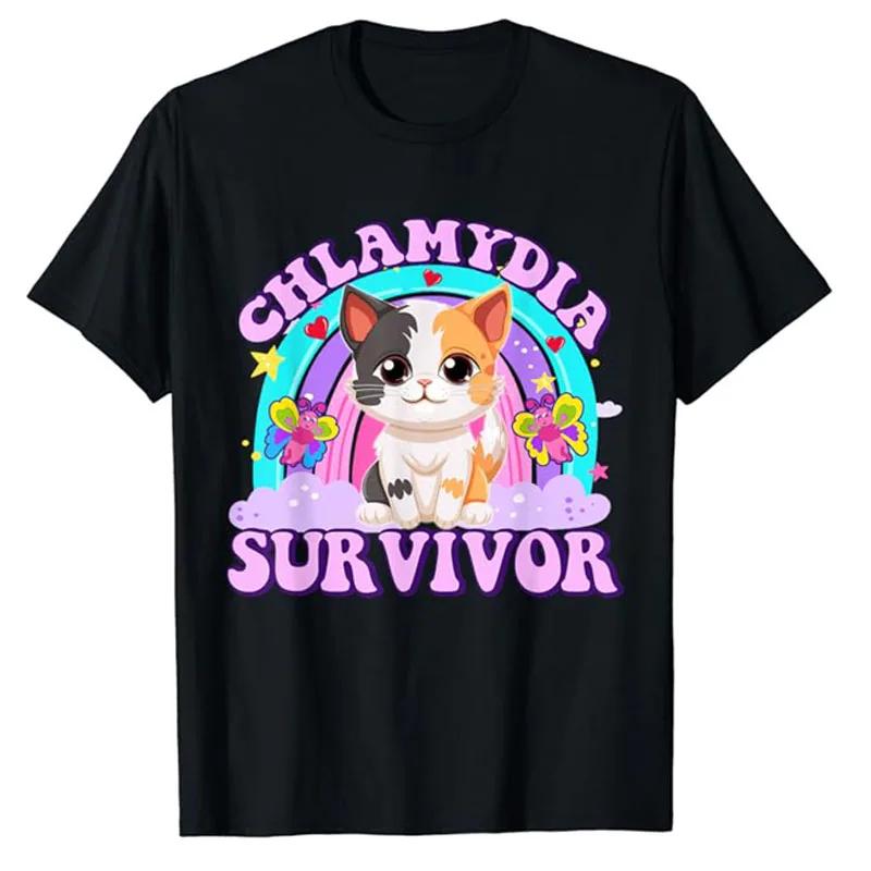 Chlamydia Survivor Cat Meme Funny Shirts for Men Adult Humor T-Shirt Cat Oddly Specific Graphic Tee Kitty Lover Kitten Clothes
