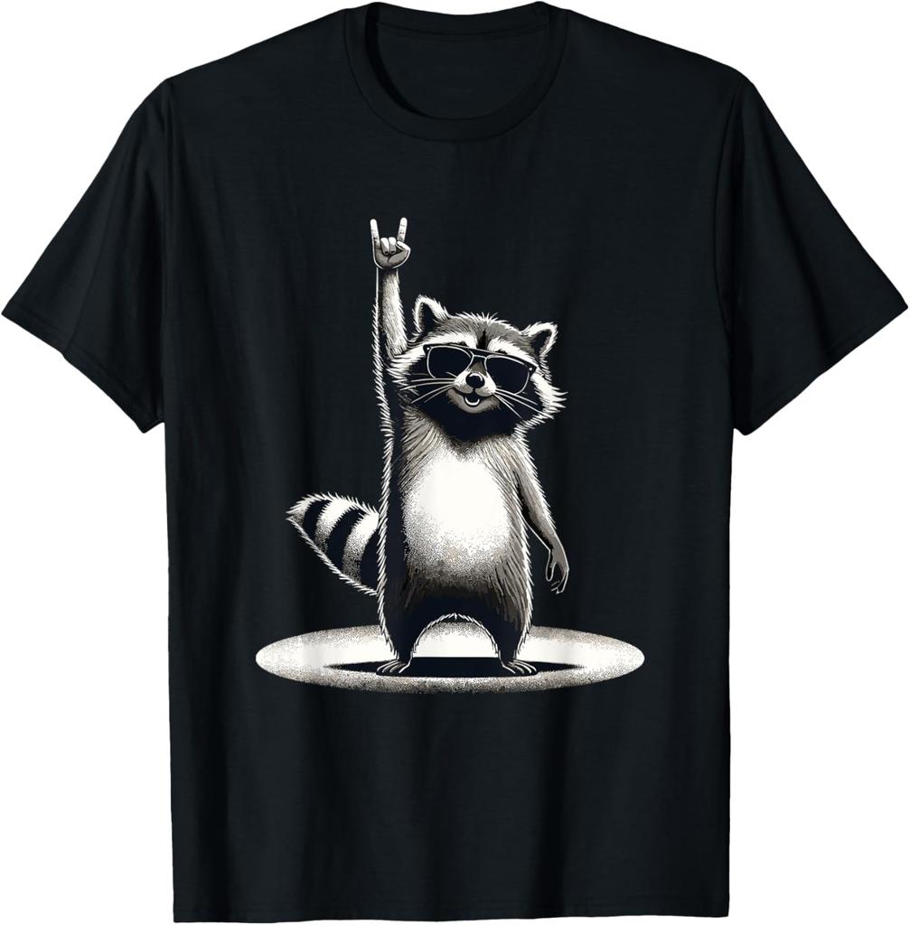 Retro Raccoon Rock Music Parttern Print Women Funny Raccoon T-Shirt Custom Printed Graphic T Shirts Funny Casual Clothing