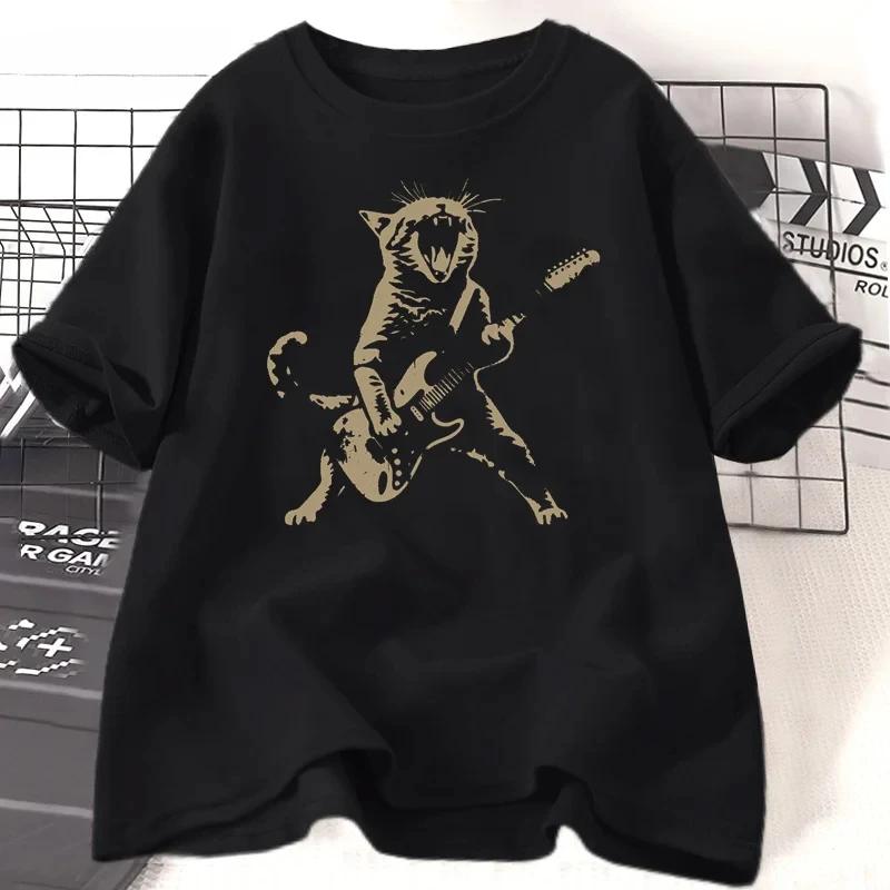 Rock Cat Playing Guitar T Shirt Women Funny Guitar Cat T-Shirt Casual Short Sleeve O Neck T-shirts Streetwear