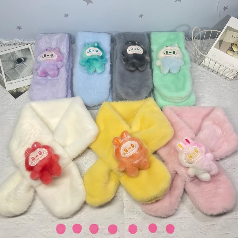 Cartoon Colorful Scarf Autumn and Winter Plush Baby Scarf Parent-child Imitation Rabbit Fur Children's Scarf