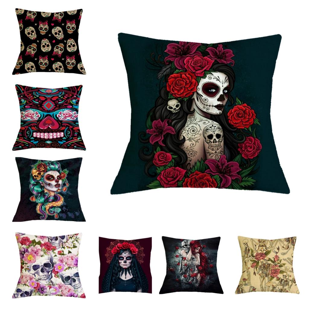 Undead Flower Bone Clip Furniture Living Room Pillowcase Double-sided Printed Square Pillowcase Bedroom Decorative Pillowcase