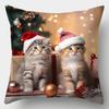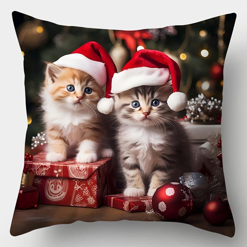 Christmas Santa Hat Kittens Pillow Cover, Festive Home Decor Pillowcase One-side Printed 1PC