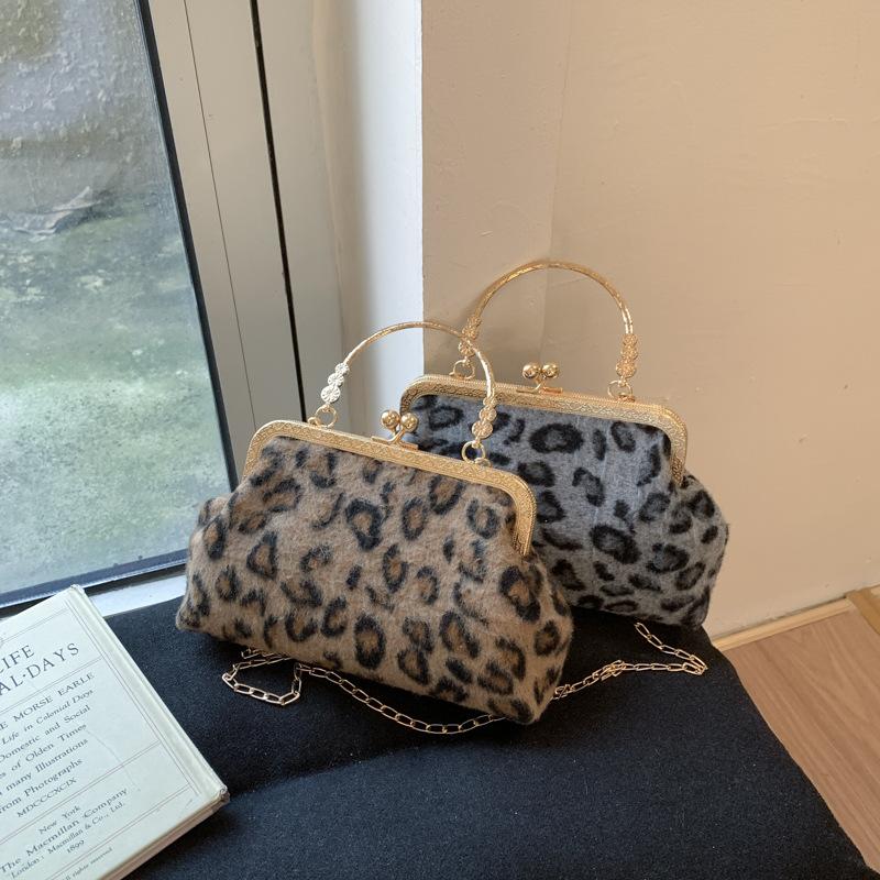 Today's Popular Mouth Gold Bag Autumn and Winter New Chain Bag Niche Leopard Print Handbag Women's Shoulder Messenger Bag