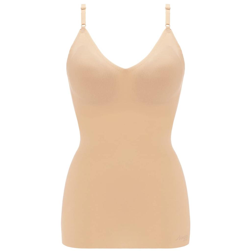 This cupped half-top is comfortable and smooth, almost melting into your skin. It's completely seamless thanks to adhesive technology, so it won't show through your outerwear. The "sloggi" logo on the bottom front creates a coordinated look with shorts. It includes removable padding. This is the large size of the G016N-Top.