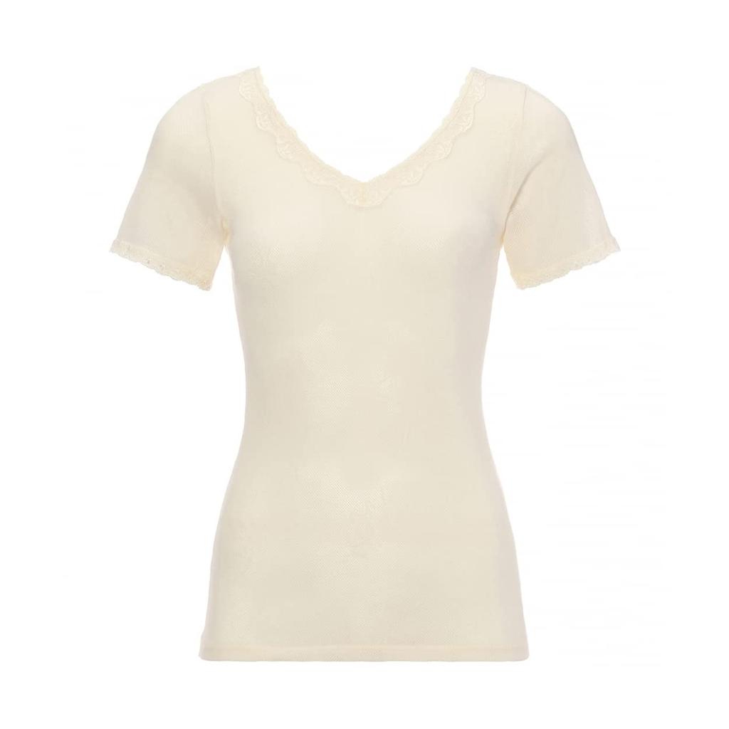 The neck opening has been made slightly smaller so that even elderly people can wear it with ease. The neckline lace has been updated to be more casual and match the atmosphere of the body fabric. It is designed not to come into direct contact with the skin. The fit around the torso has been made slightly looser.