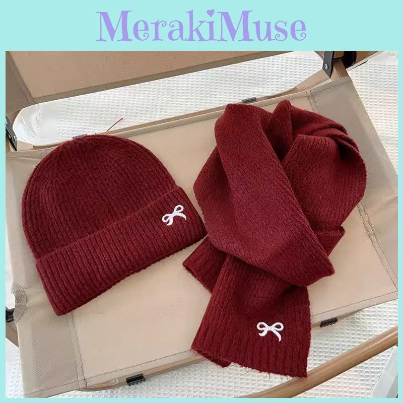 Autumn Wool Beanie With Bow Detail And Soft Polyester Material
