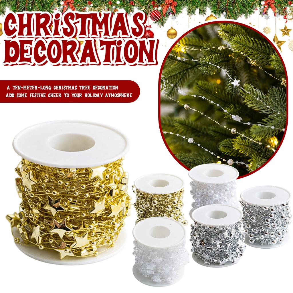 Christmas Decorations: Pearl Star Chain, Sky, Round Bead Christmas Tree Diy Pendant, Handcrafted Pendant