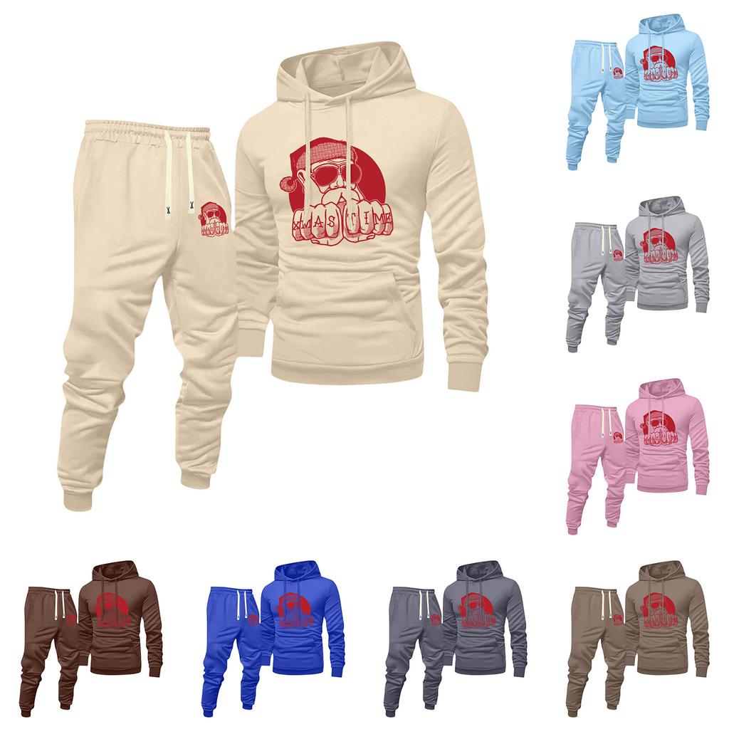 Men's Printed Hooded Sweatshirt And Sweatpants Casual Sports Suit